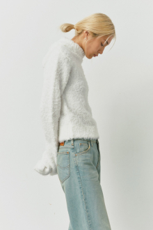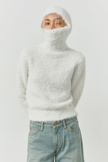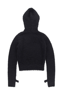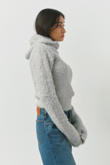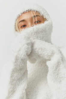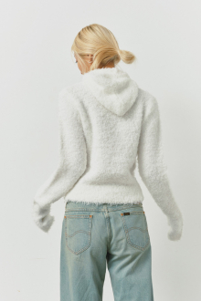 ふわふわとした柔らかなニットが心地よいフード付きトップス。