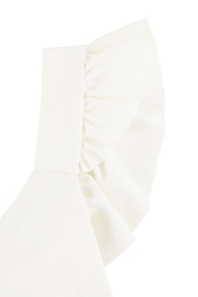 肩にかかるフリルは程よいボリュームで、腕まわりを華奢に見せる視覚効果も期待できます。