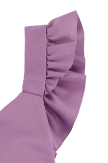 ボディラインに沿うすっきりとしたトライアングルシルエットに、立体感のあるフリルストラップを組み合わせることで、シンプルながらも存在感のある一着に仕上げました。