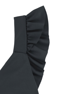 肩にかかるフリルは程よいボリュームで、腕まわりを華奢に見せる視覚効果も期待できます。