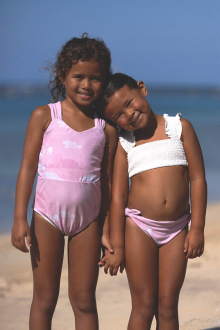 PF50+のUVカット素材を使用し、小さなビーチガールへのスペシャルなビキニです。