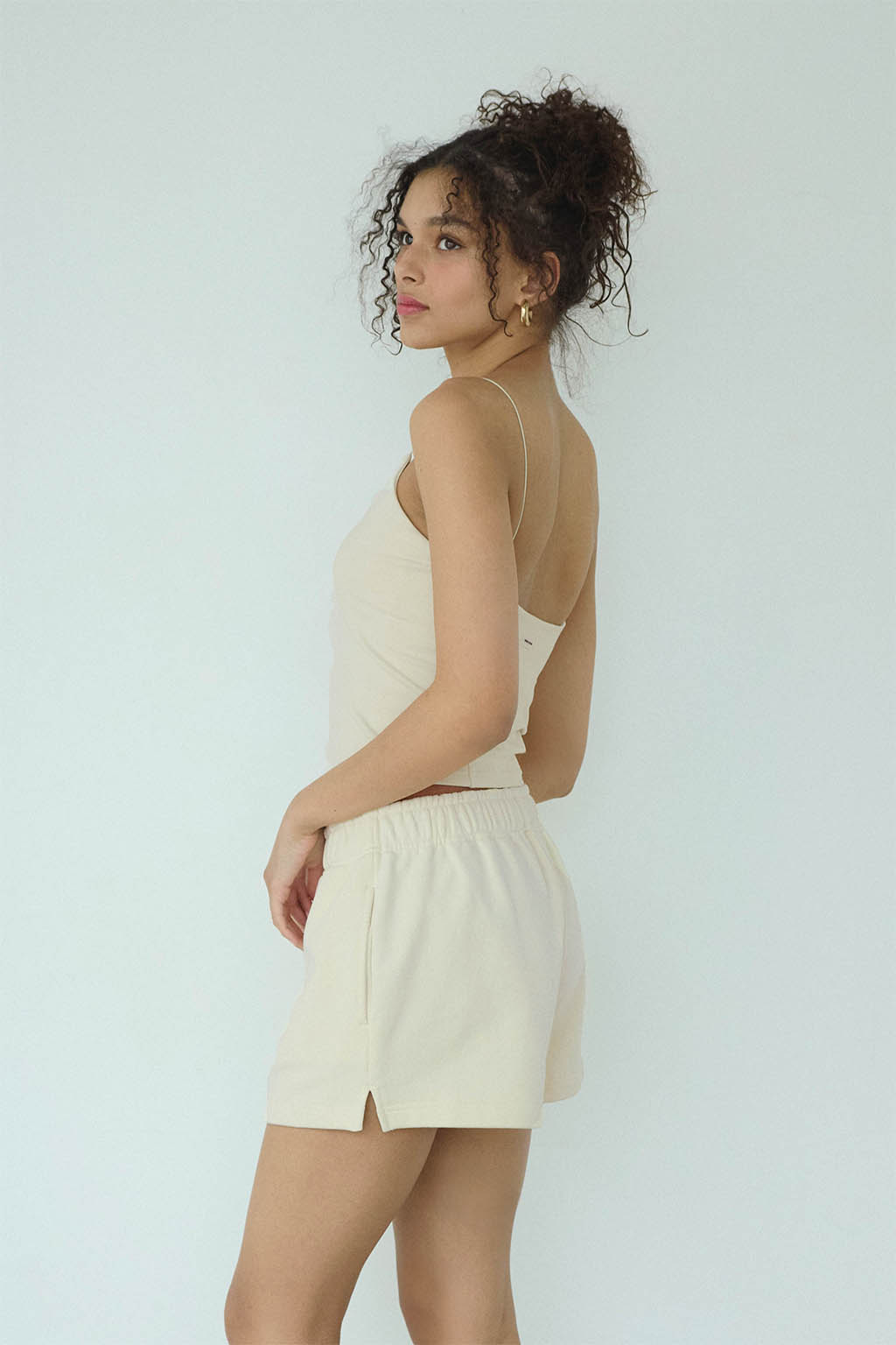 柔らかな肌触りと程よい厚みのスウェット素材を使用したショートパンツ。