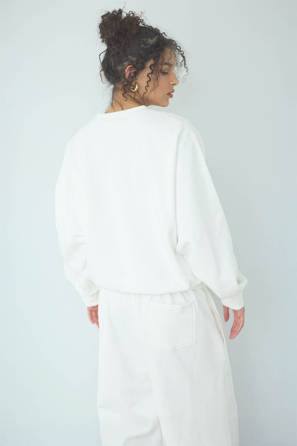 柔らかな肌触りと程よい厚みのスウェット素材を使用したトップス。