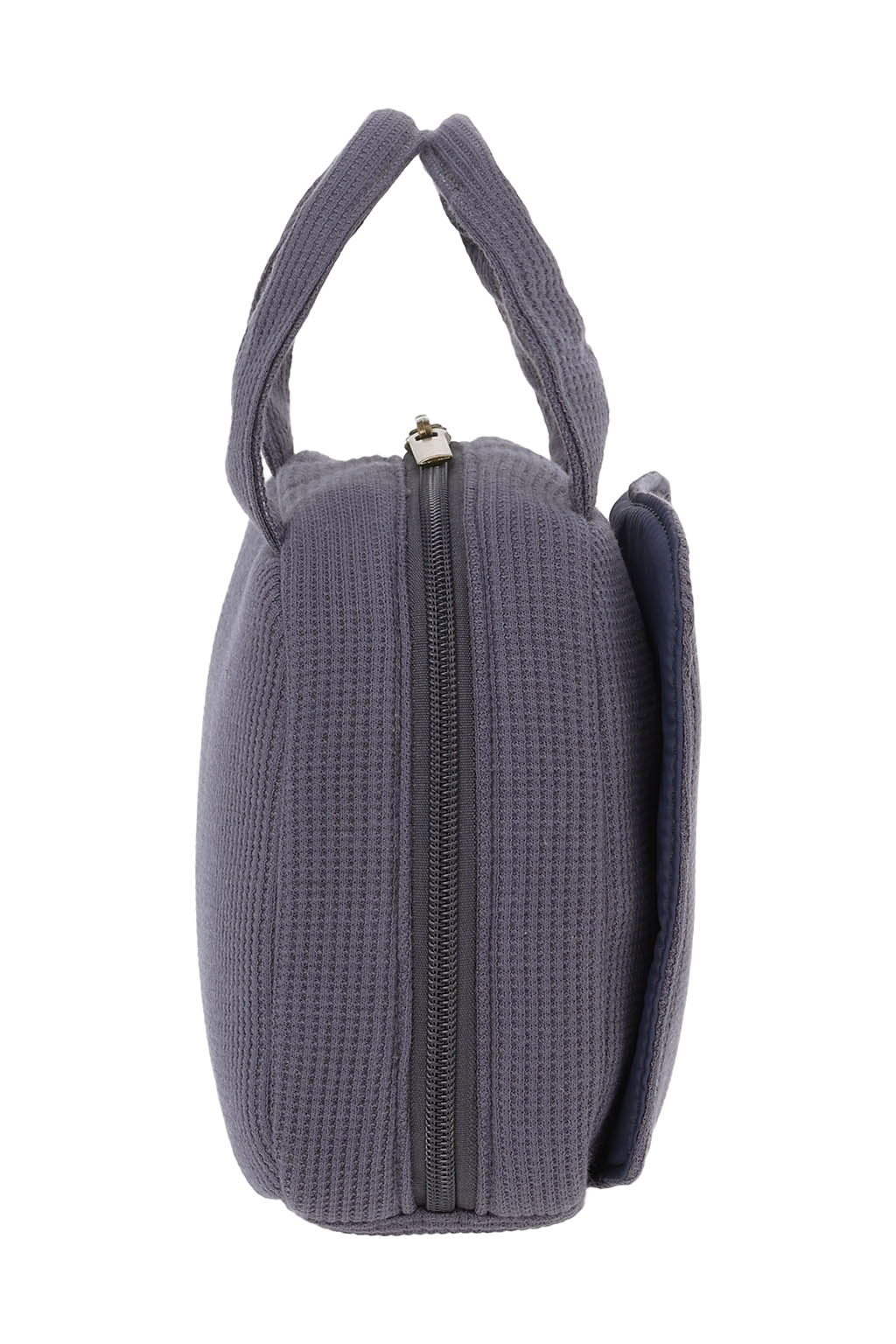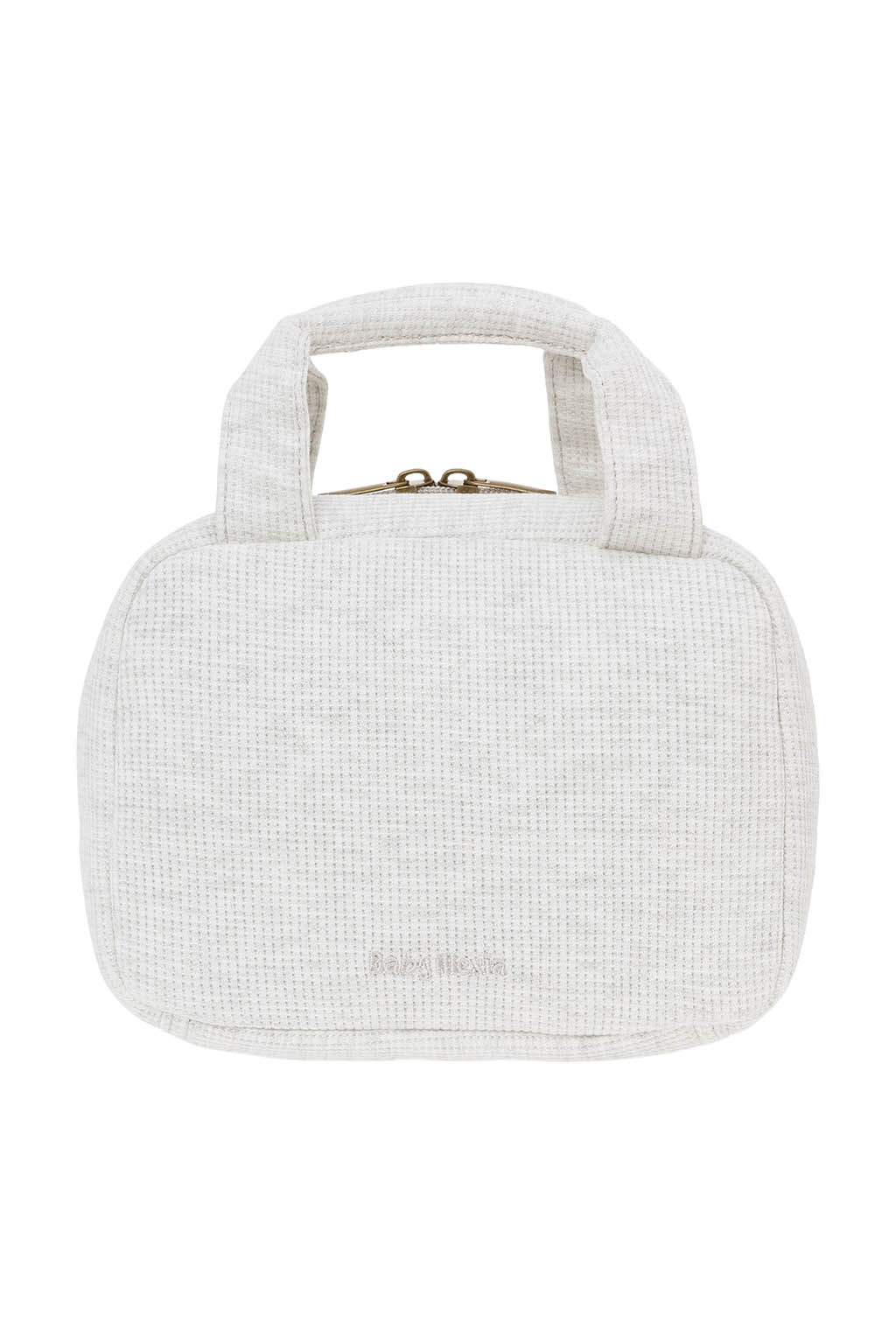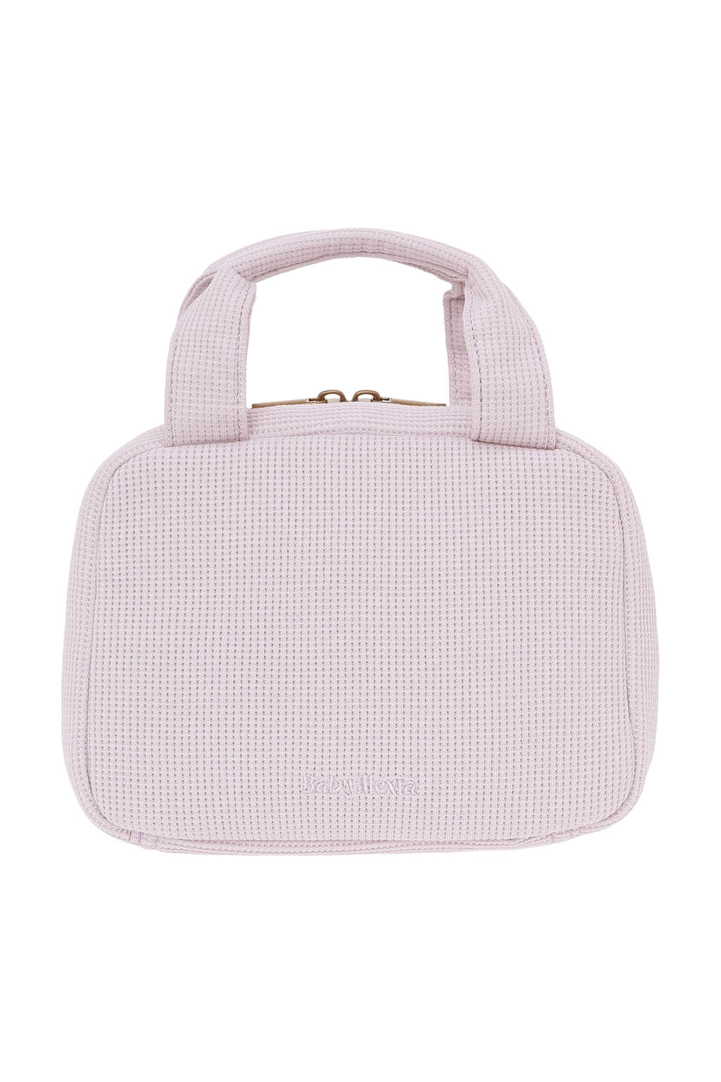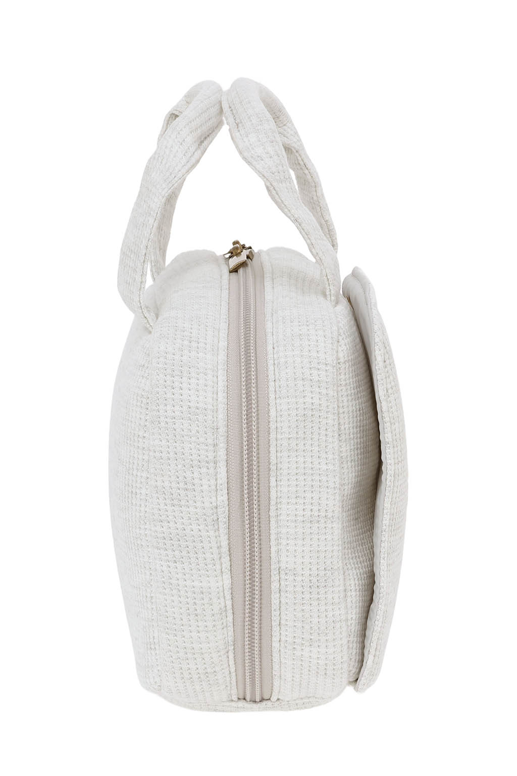 やさしい風合いのワッフル素材を使用した、丸みのあるフォルムのおむつポーチ。