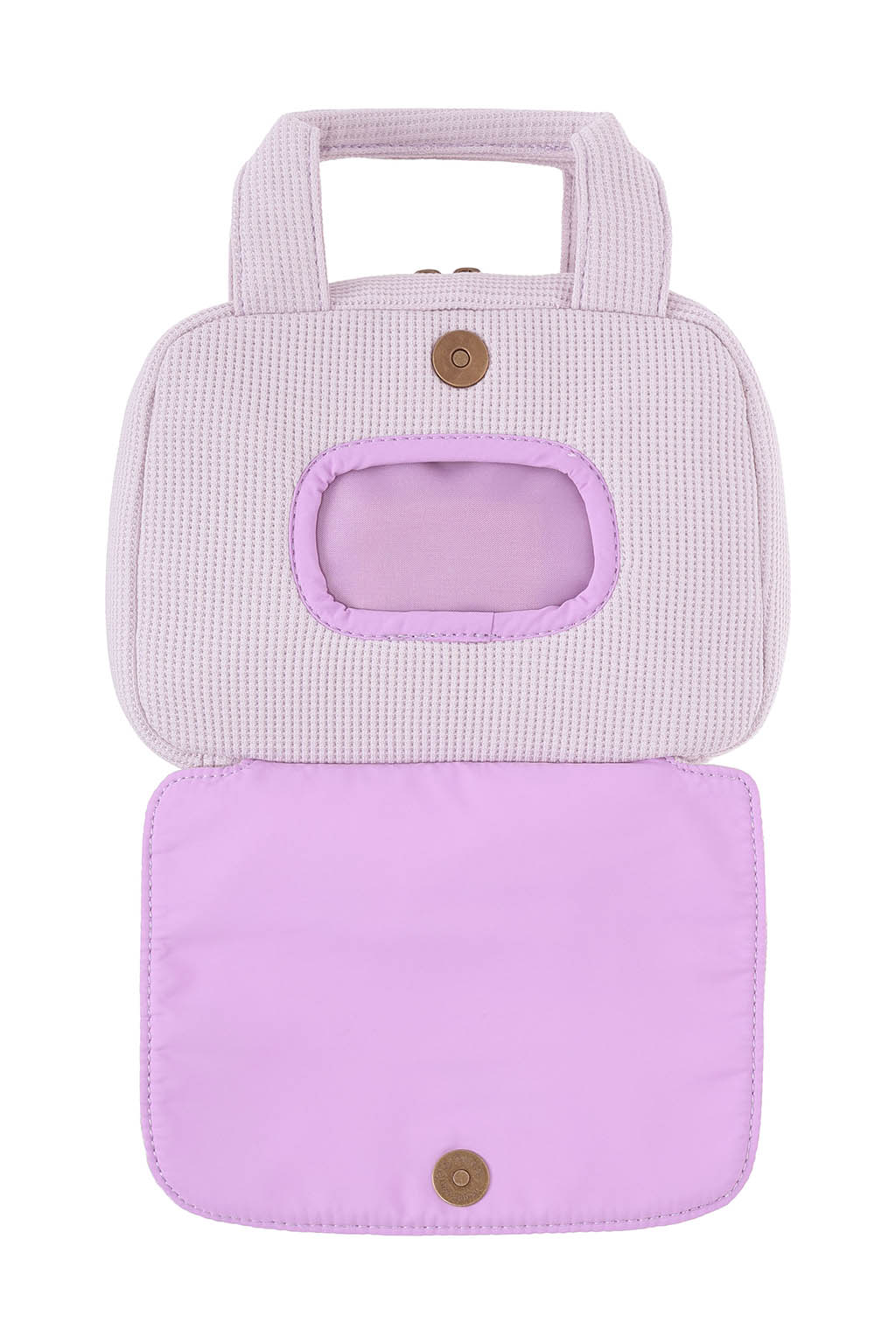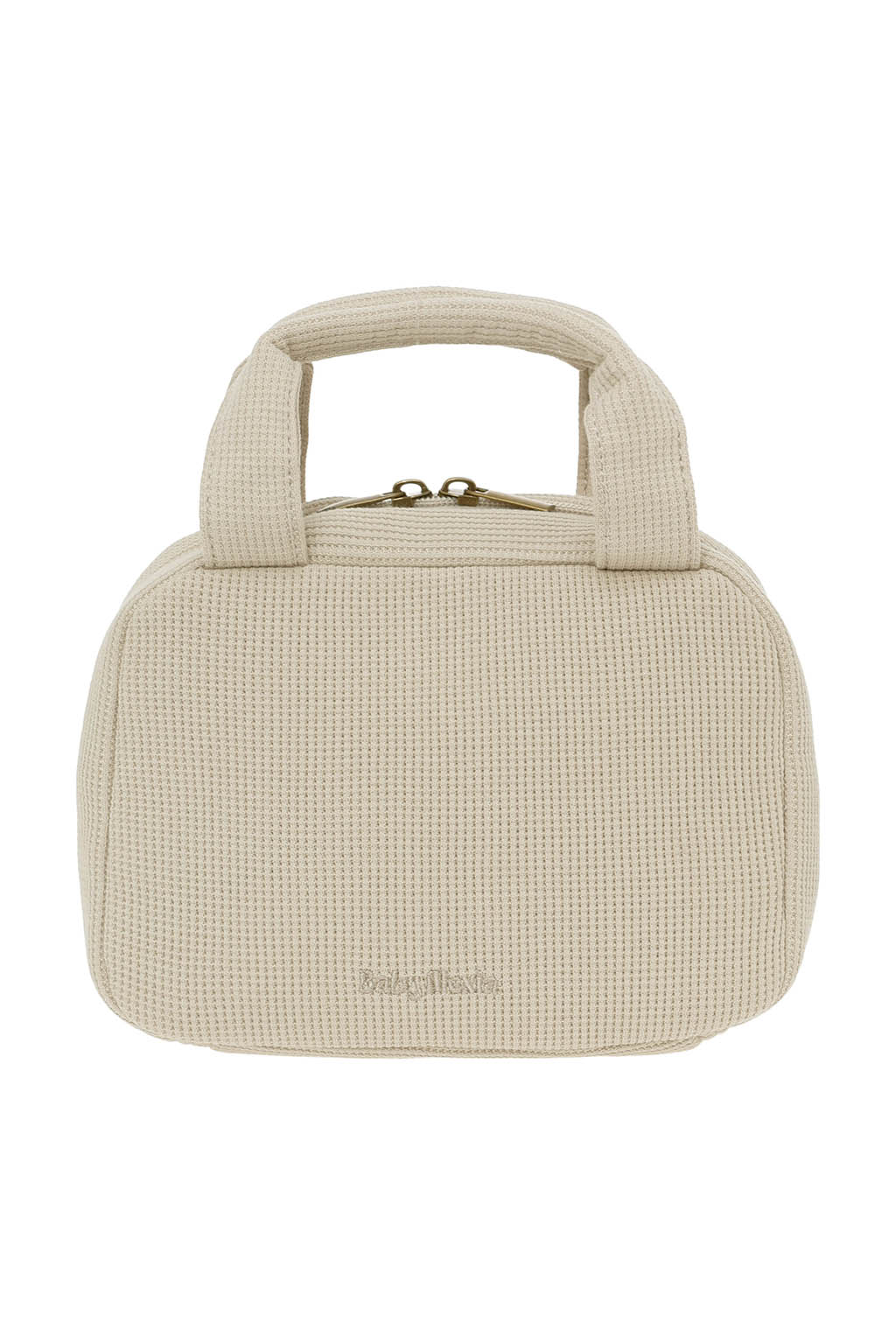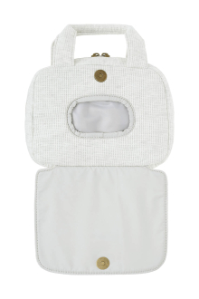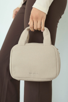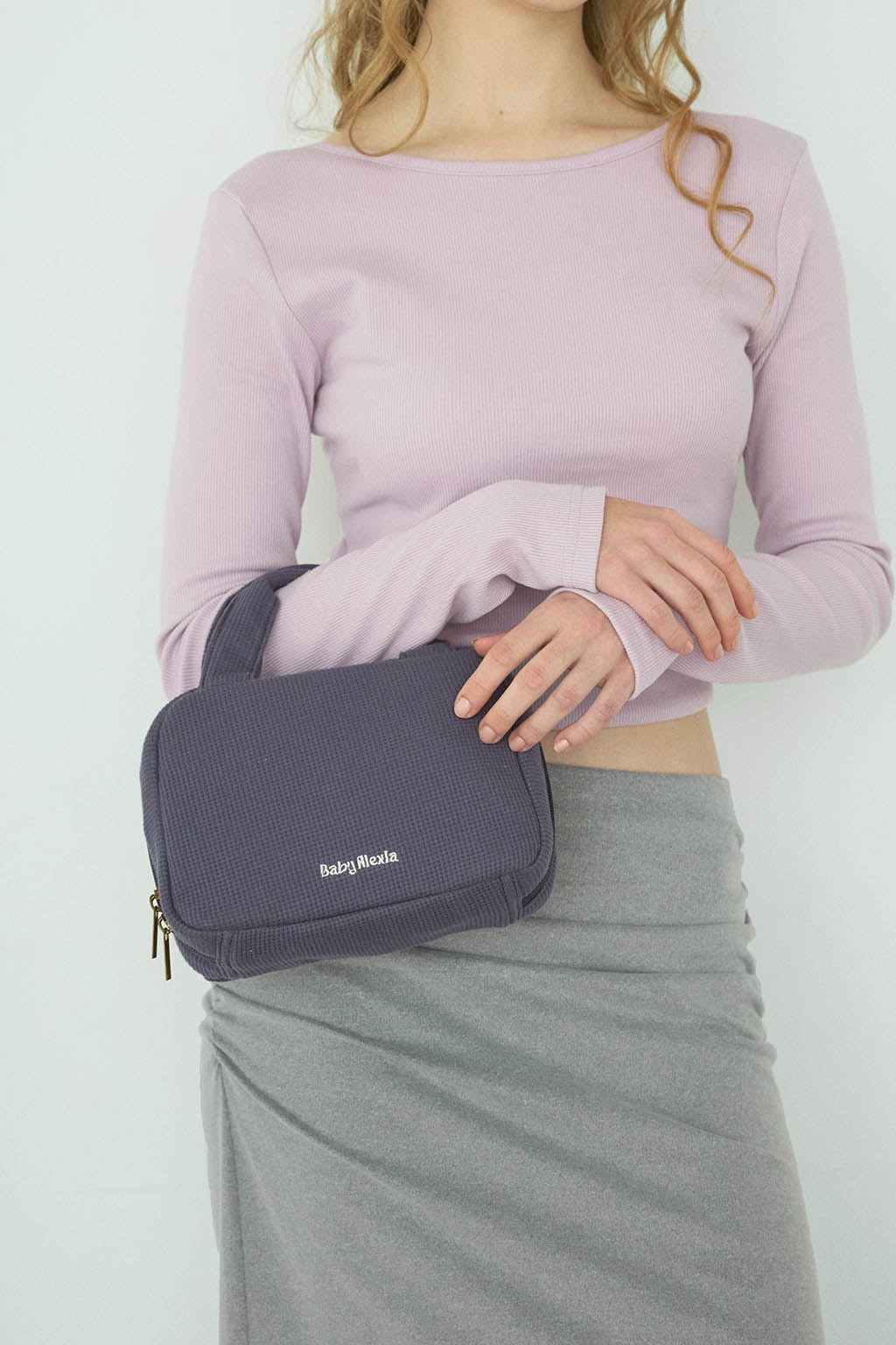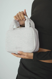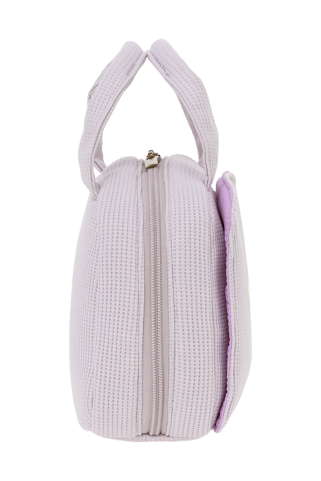 やさしい風合いのワッフル素材を使用した、丸みのあるフォルムのおむつポーチ。