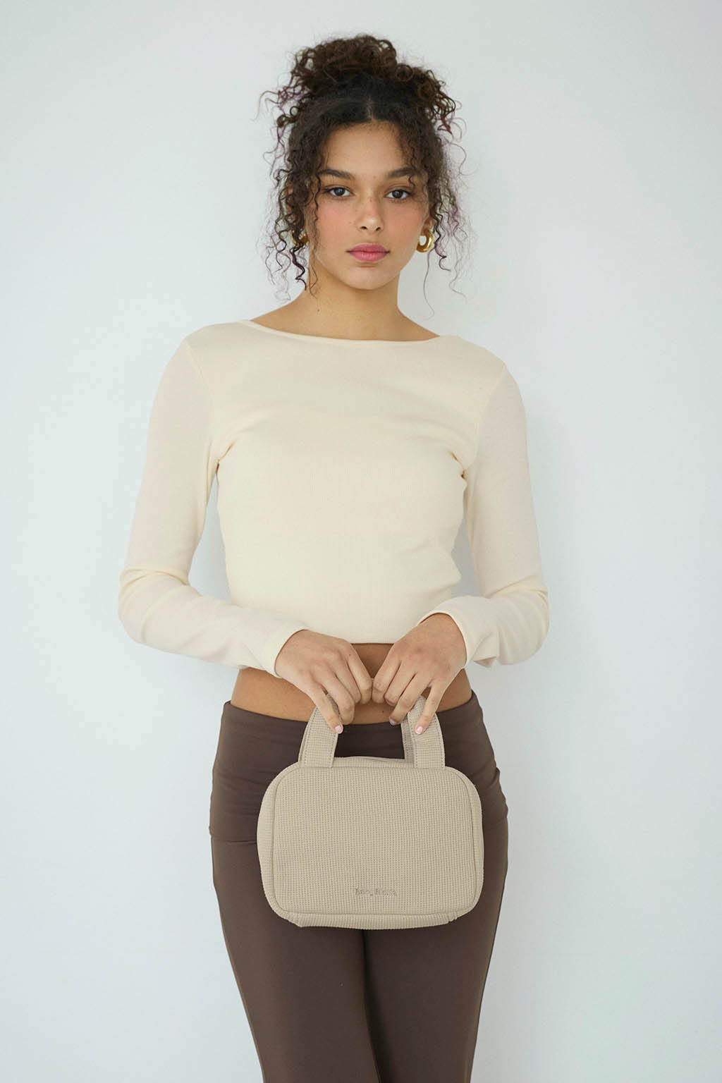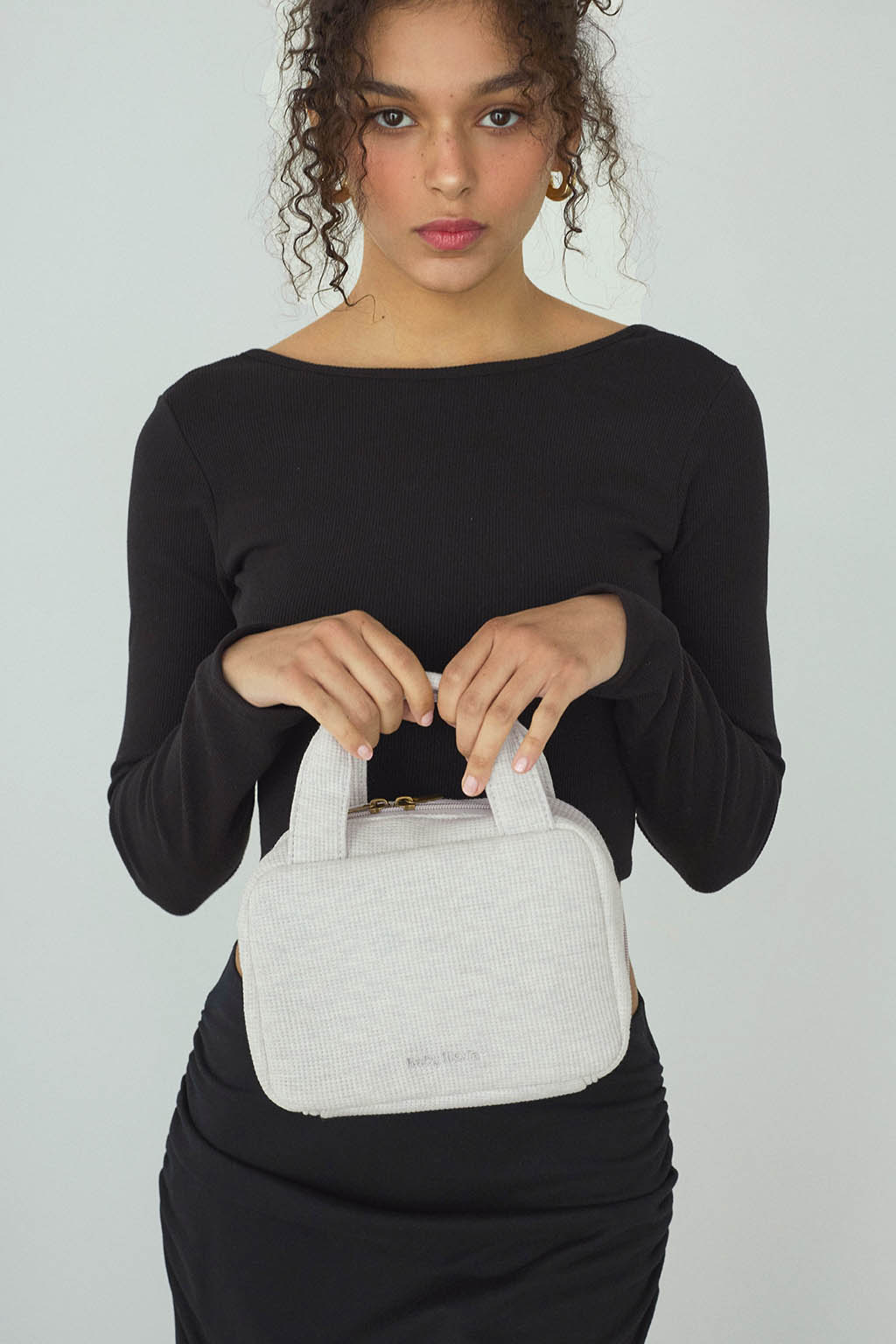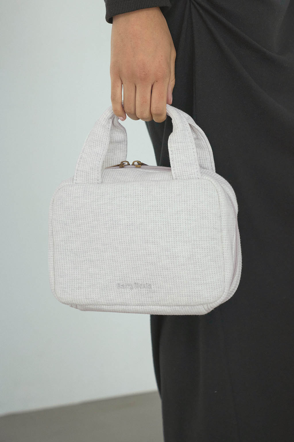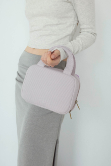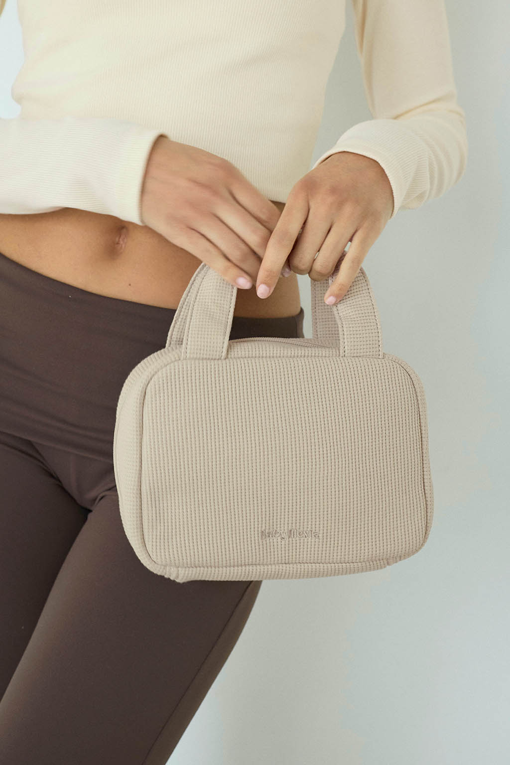 やさしい風合いのワッフル素材を使用した、丸みのあるフォルムのおむつポーチ。