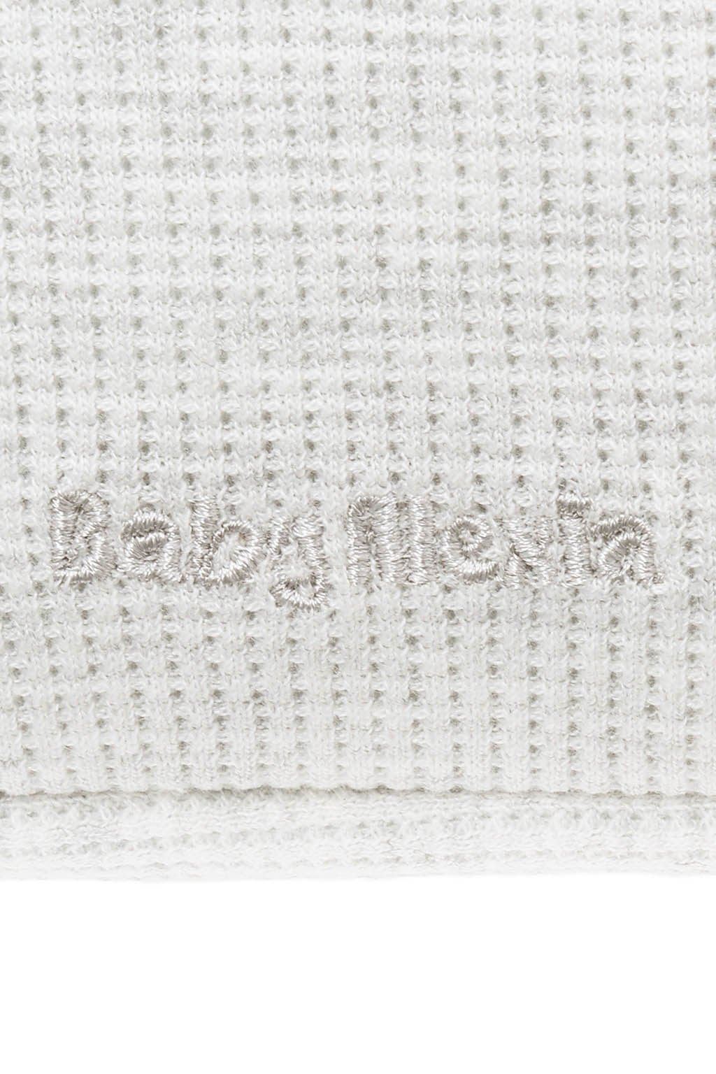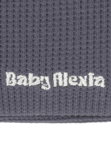 凹凸感のある生地がナチュラルで上品な印象を演出し、Baby Alexiaのロゴがさりげないアクセントに。