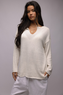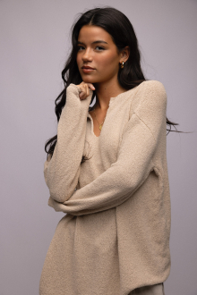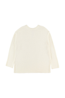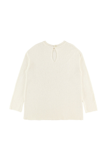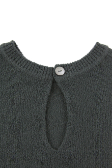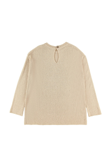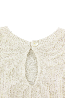 シェルボタンを施し、ざっくりとした編地が魅力のニットトップス。