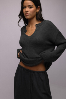 フロントのカットアウトがスタイリングに抜け感をもたらすニットトップス。