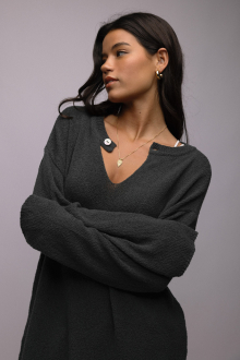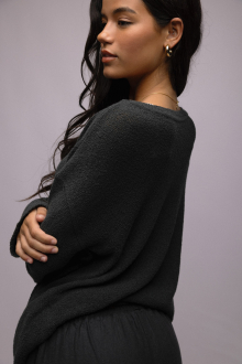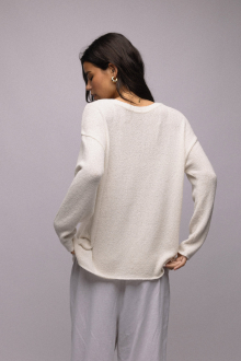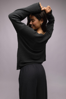 ネックラインは丸みがあり、様々な着こなしに馴染んでくれます。