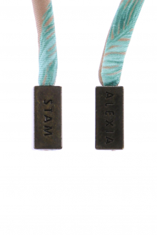 肩紐に施したチャームには、ALEXIA STAMのロゴが刻印されています。
