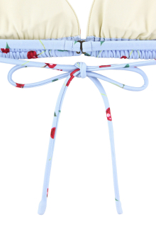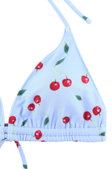涼しげなサックスブルーにチェリー柄を散りばめた、ポップで遊び心のあるデザイン。