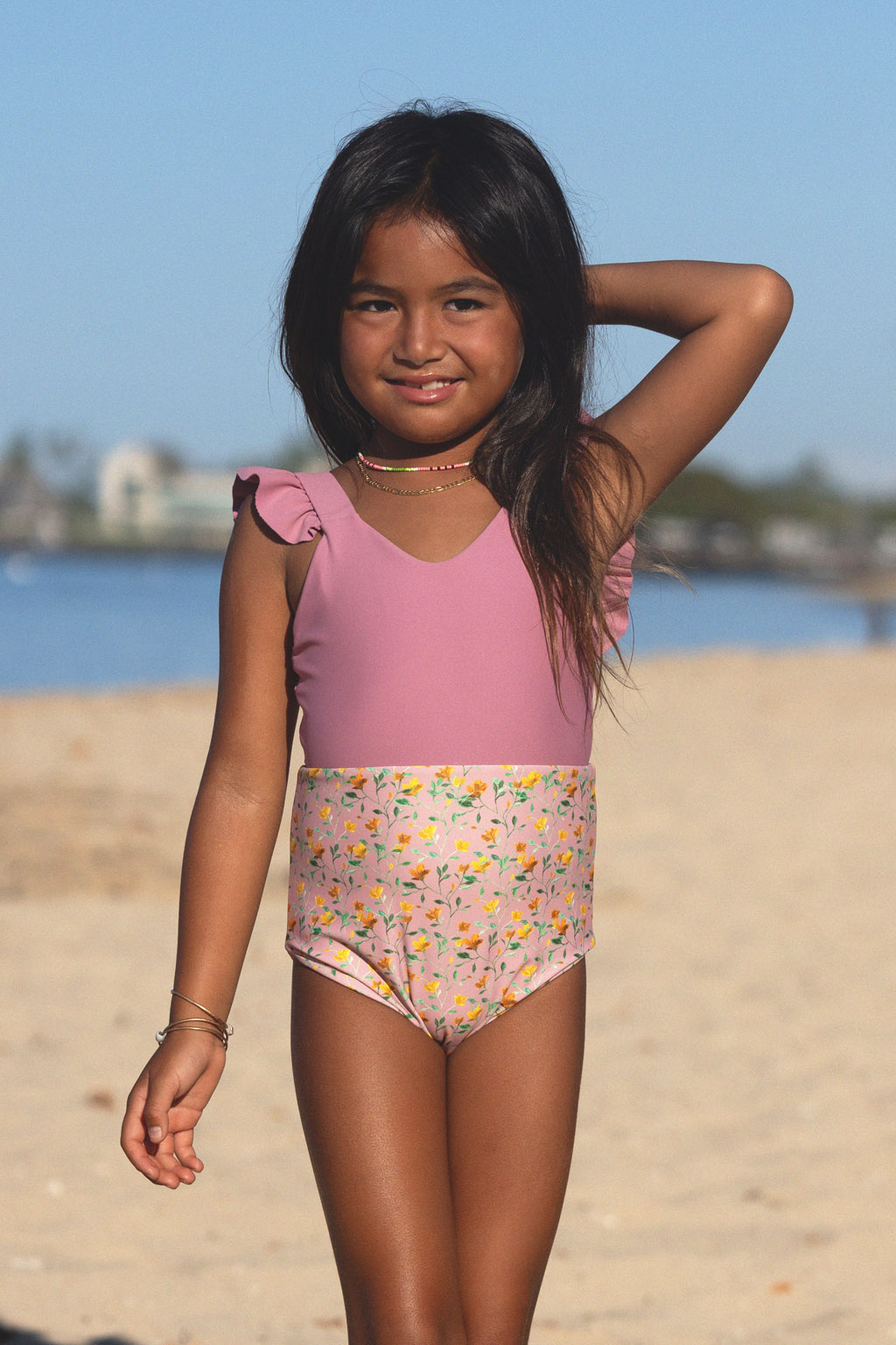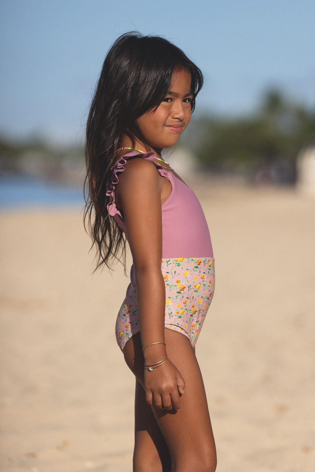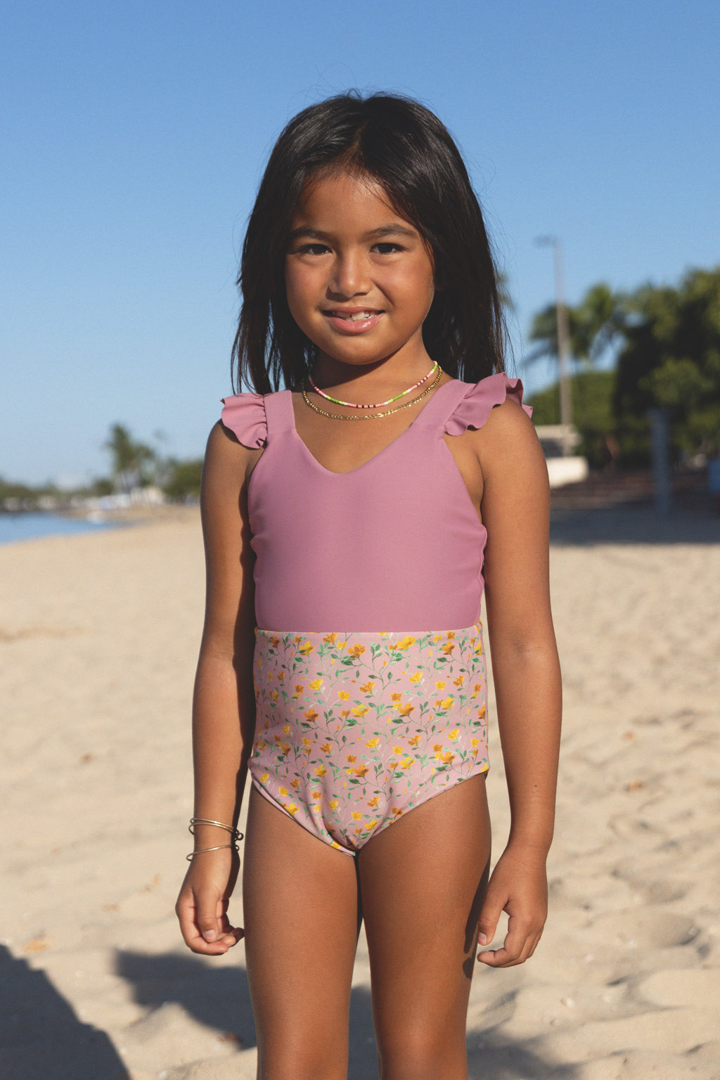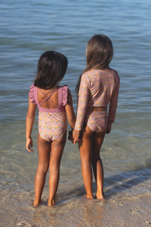 PF50+のUVカット素材を使用した、小さなビーチガールへのスペシャルなビキニ。