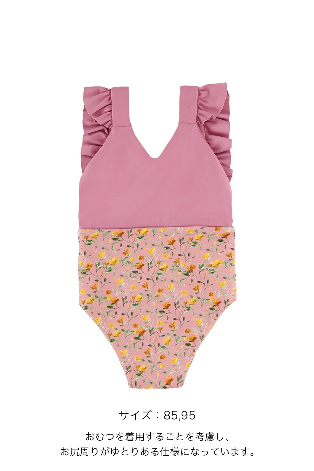 95サイズ以下は、おむつを履くことを考慮して、お尻周りがゆとりのある仕様になっています。(画像9枚目参照)