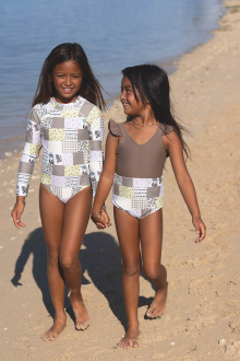 PF50+のUVカット素材を使用した、小さなビーチガールへのスペシャルなビキニ。