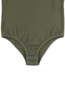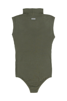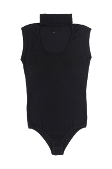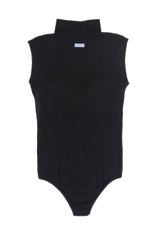 ハイネックに胸元のオープンデザインがヘルシーなパッドinボディースーツ。