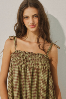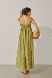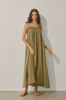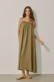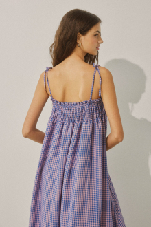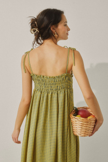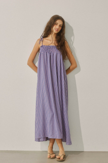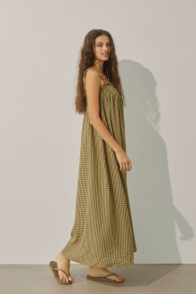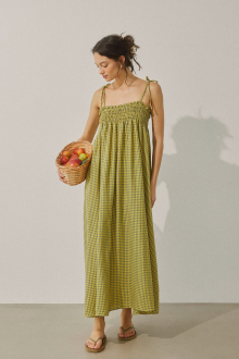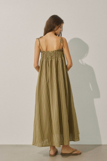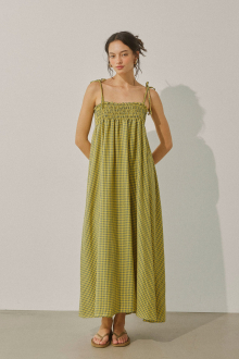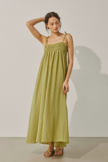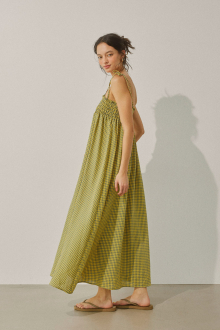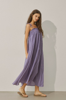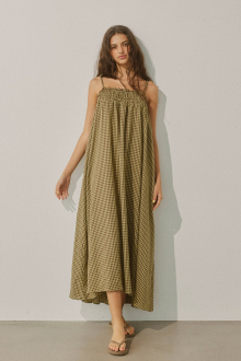 細やかなチェック柄で大人の可愛らしさを演出するマキシワンピース。