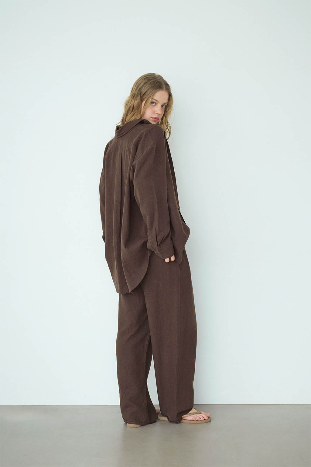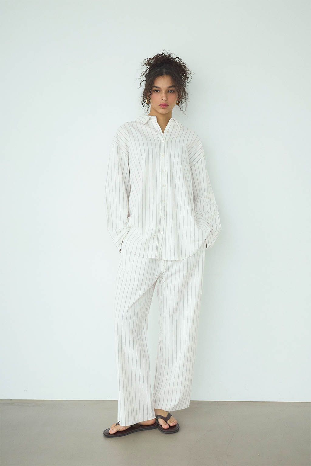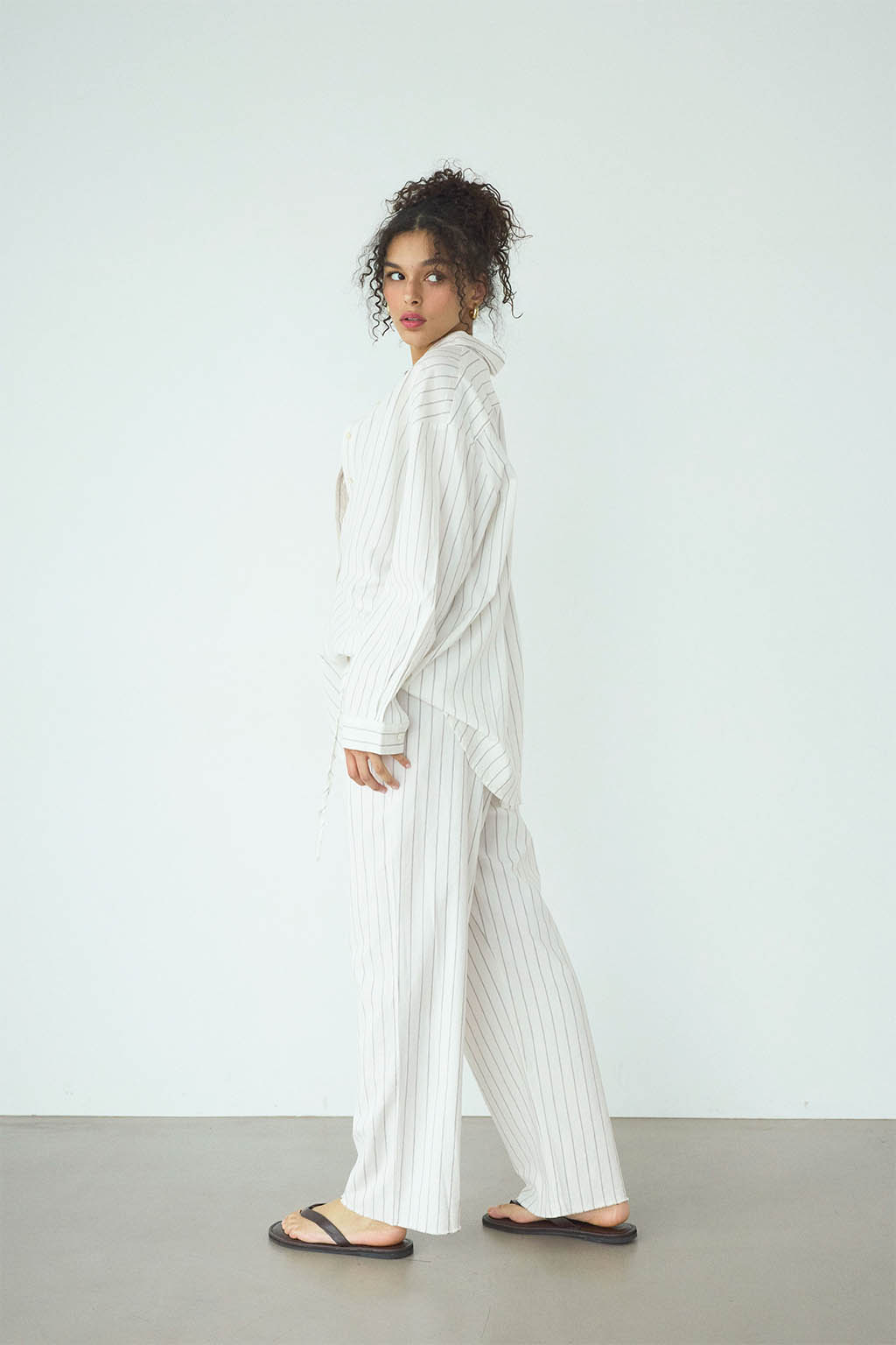 ゆったりとしたストレートシルエットが、リラックス感のある大人の抜け感を演出。