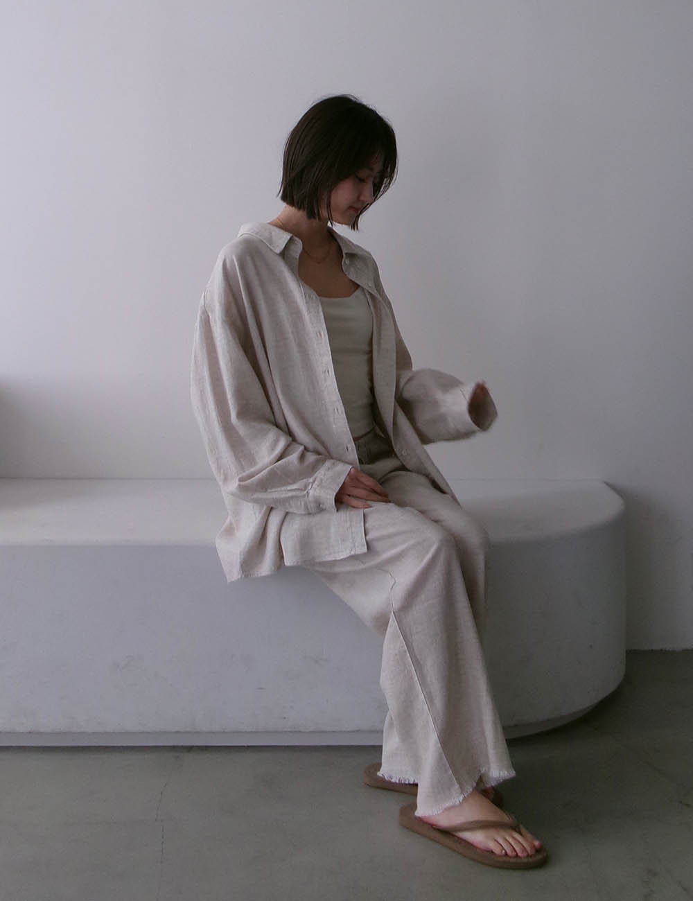ナチュラルな風合いが魅力のリラックスパンツ。