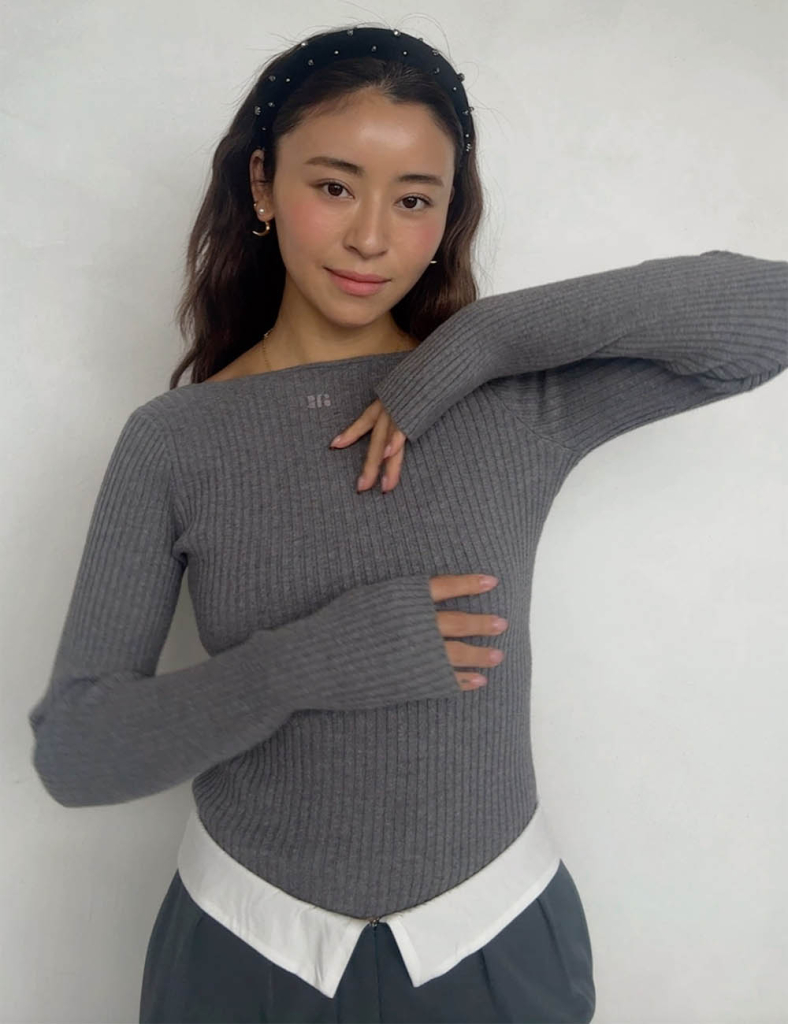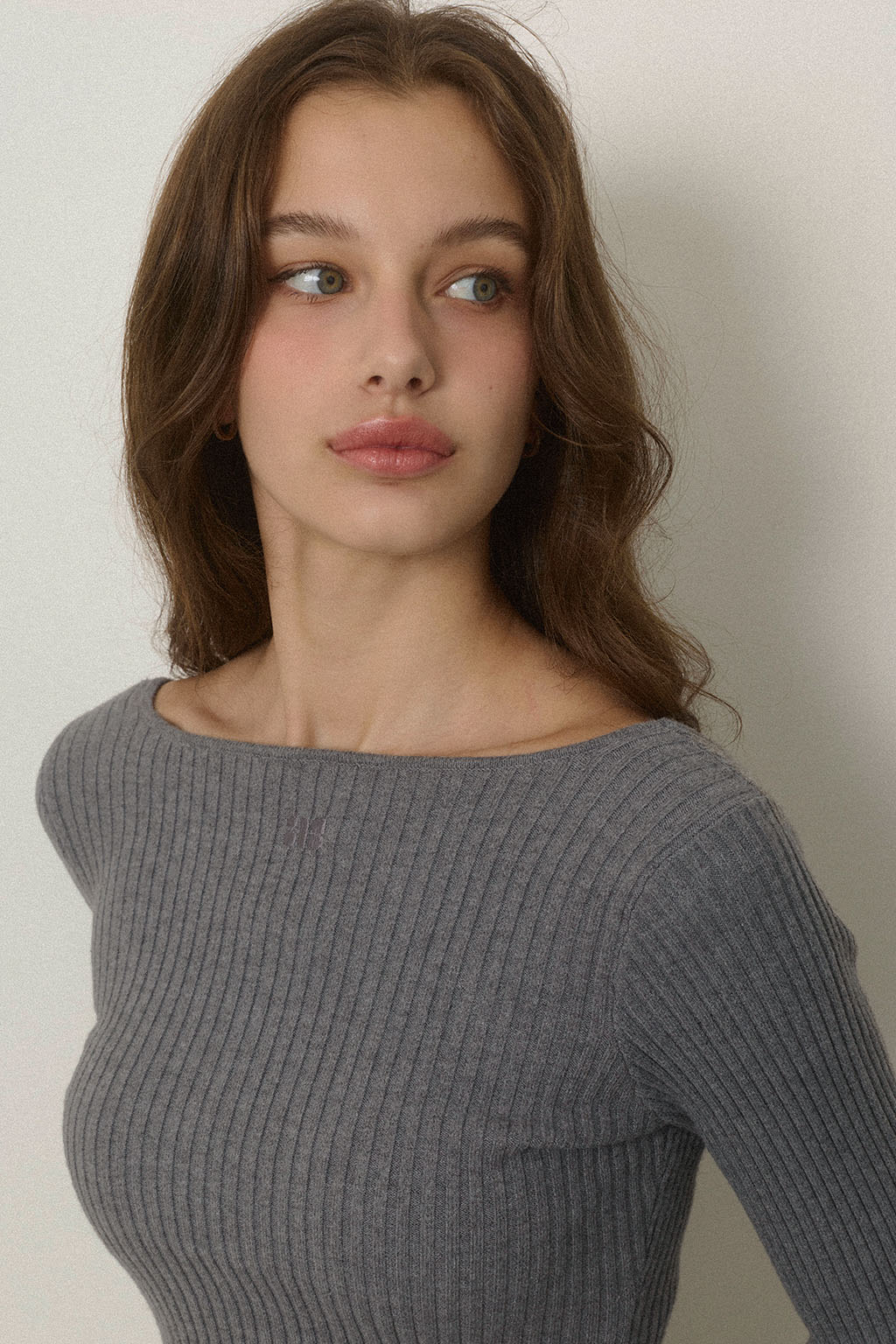 フロントはボートネックデザインで、深めに開いたバックデザインが抜け感を演出し、1枚で着映えする存在感。