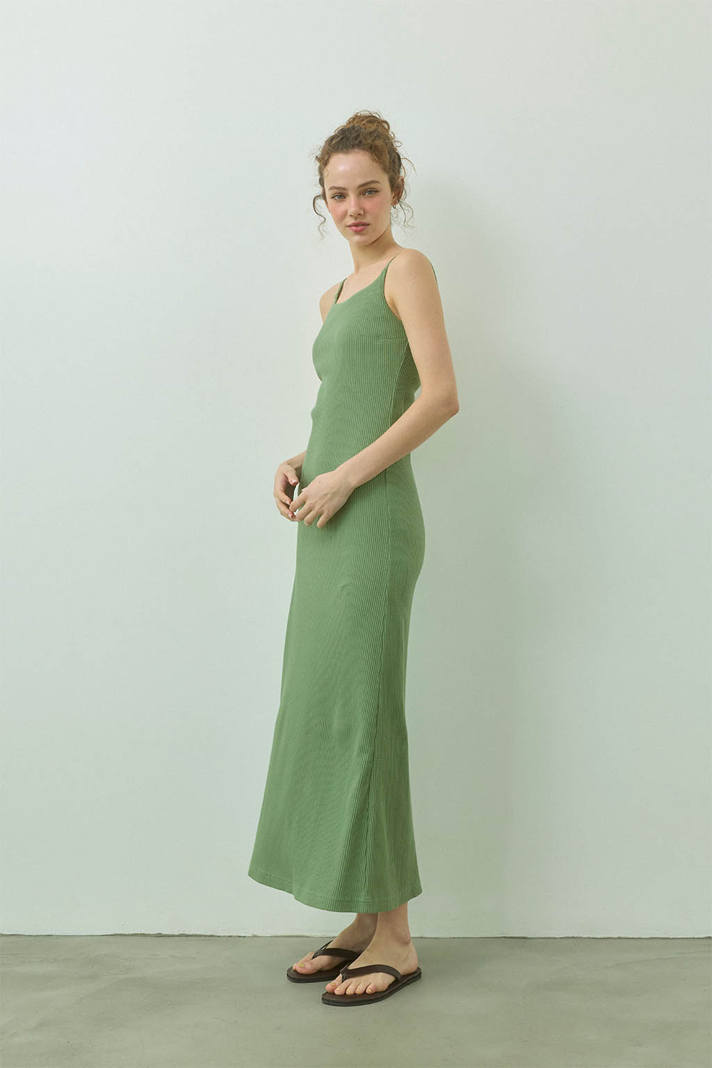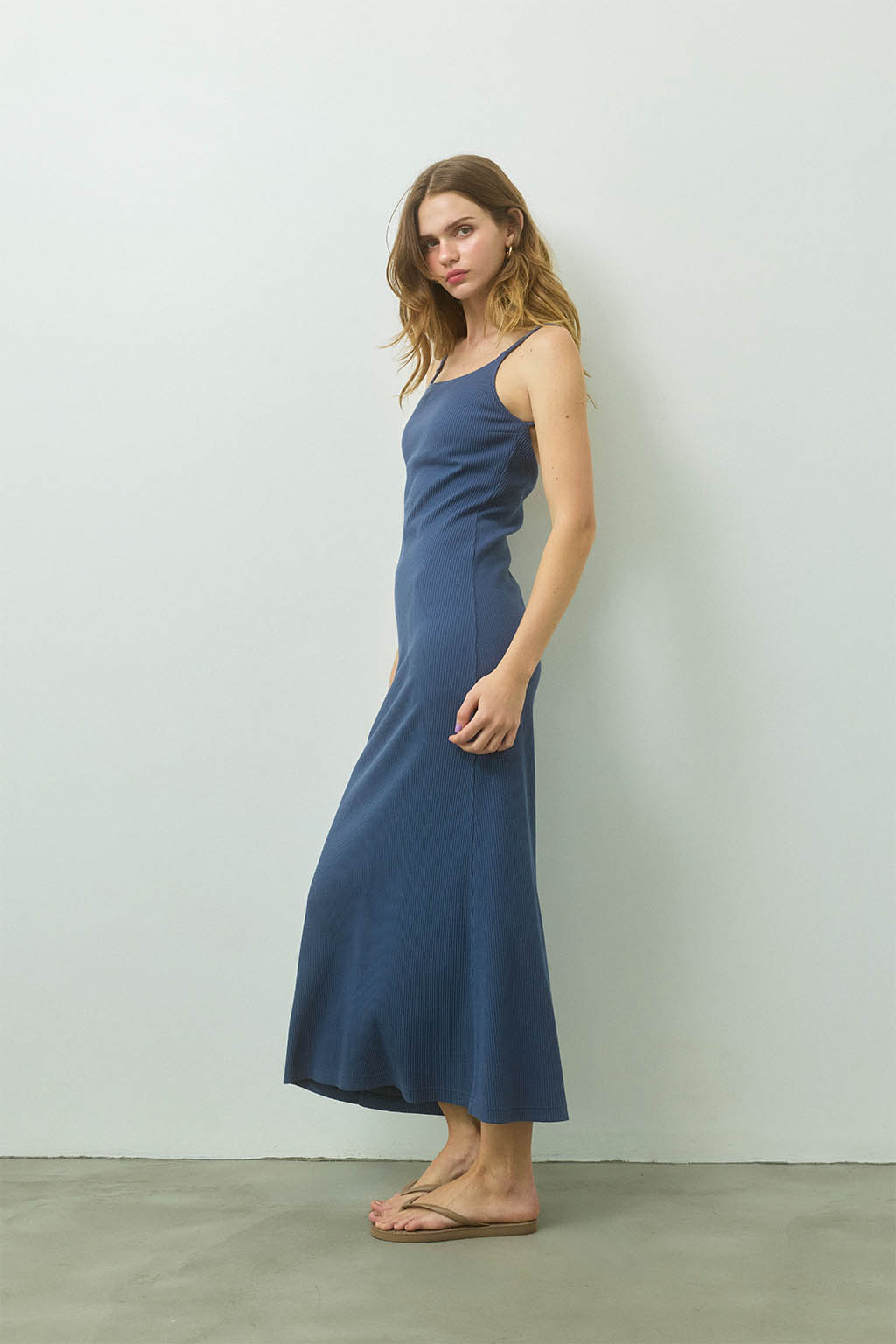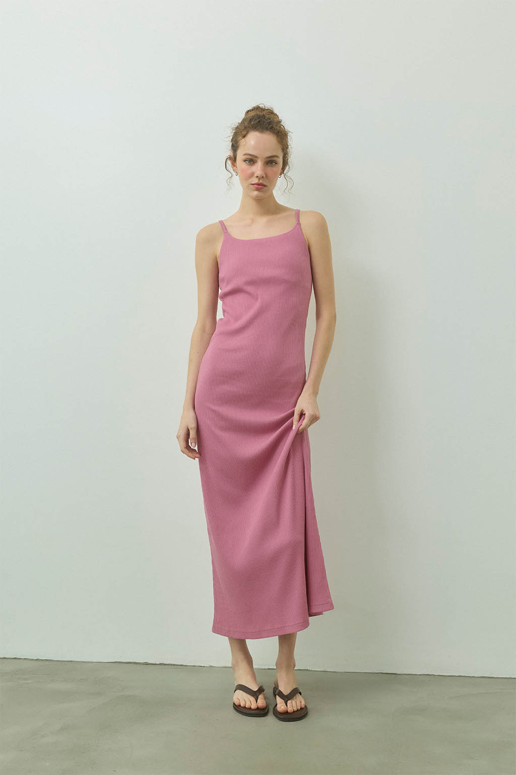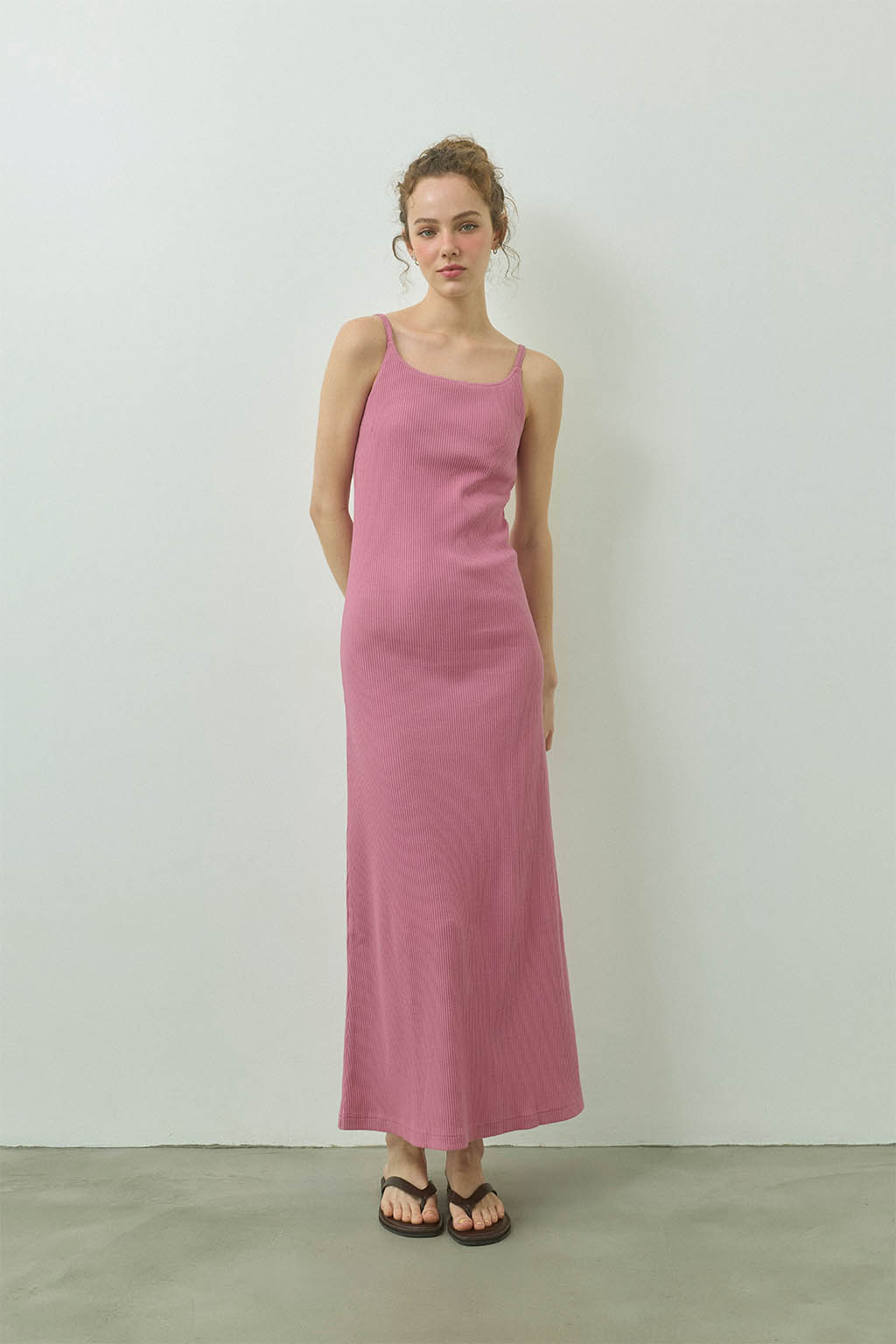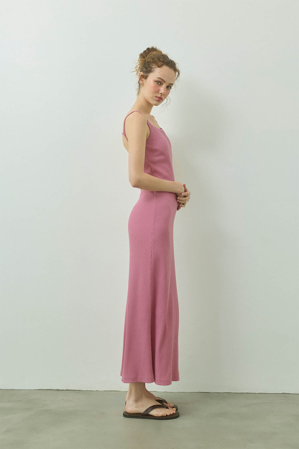 女性らしいラインを美しく引き立てる、パッドinリブロングドレス。