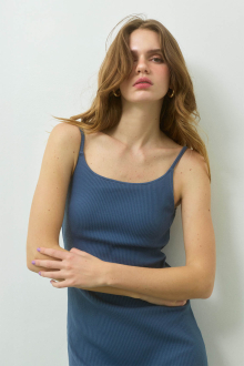 身体にほどよくフィットするリブ素材が、すっきりとした縦ラインを演出し、1枚で洗練されたシルエットを叶えます。