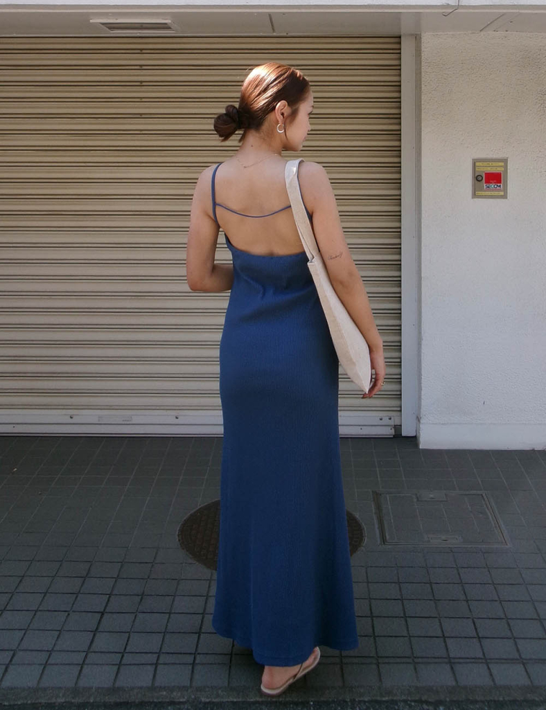 華奢なストラップと、バックに施したラインディテールがさりげないアクセントとなり、後ろ姿まで美しく魅せてくれるデザイン。