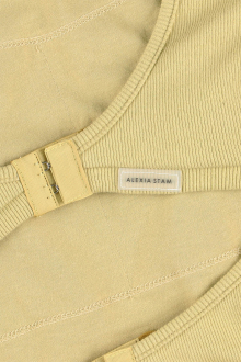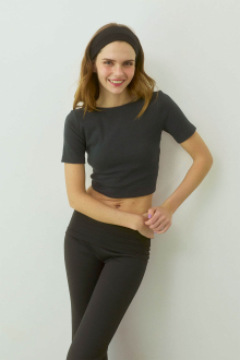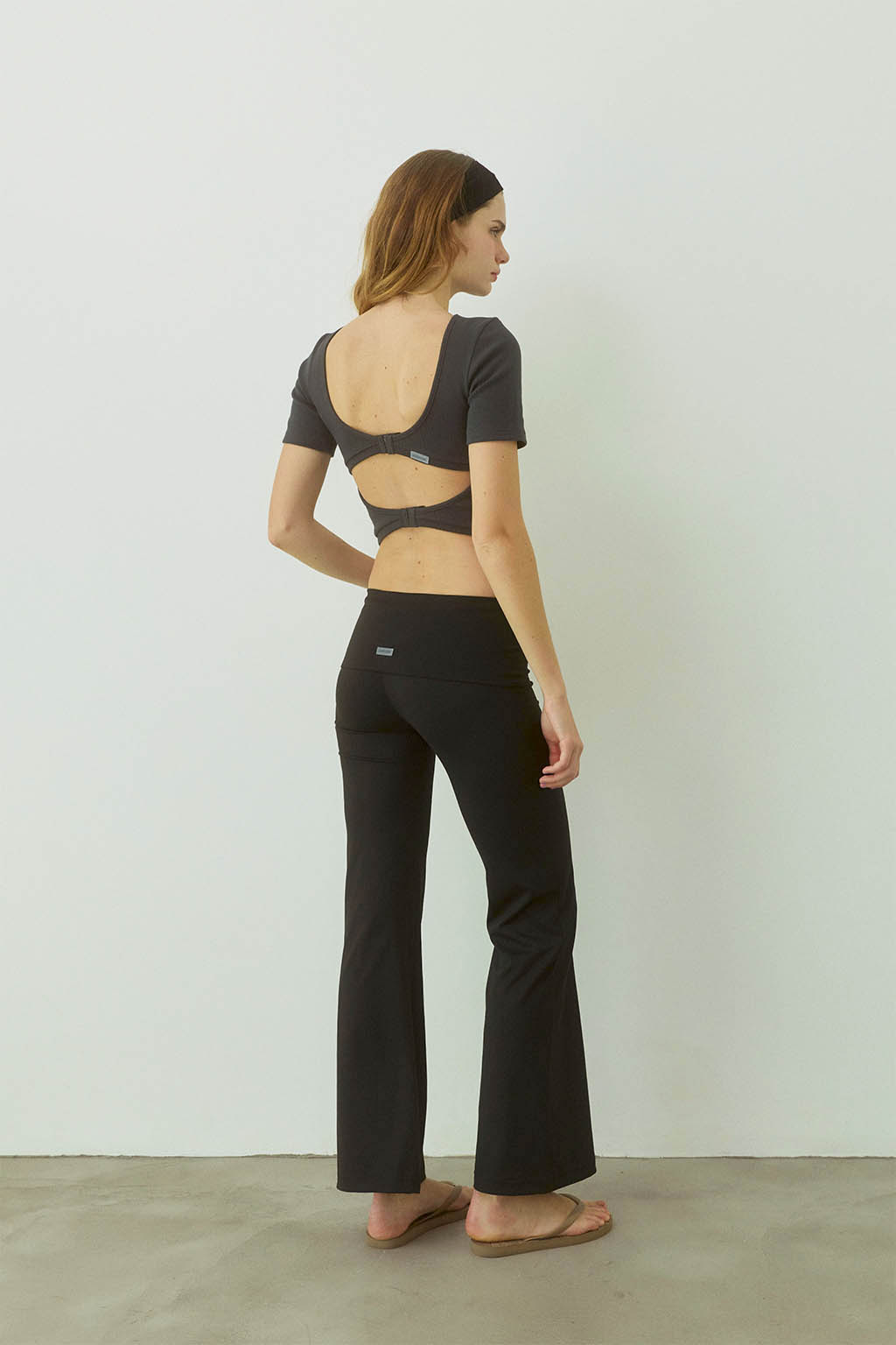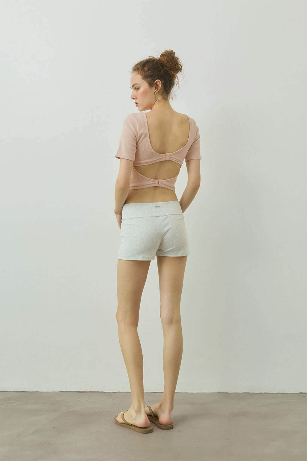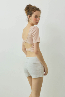 フィット感のあるストレッチ素材と、カップ付きの安心感で、1枚でさらっと着られるのも嬉しいポイント。