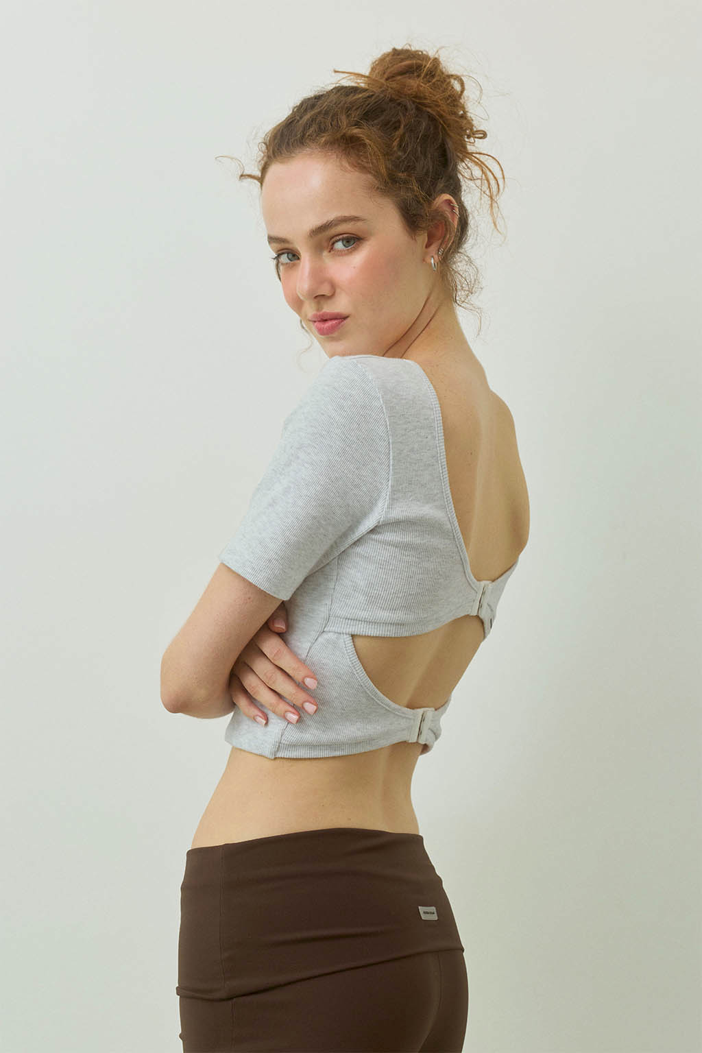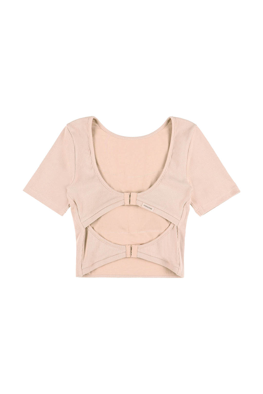 背中のダブルホックが目を惹く、バックアジャスタートップス。