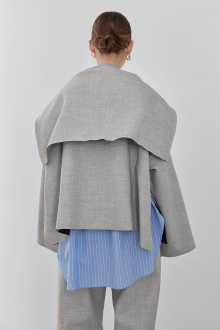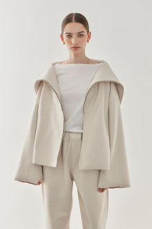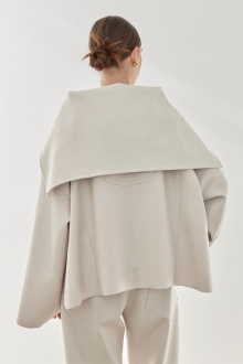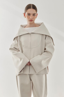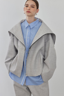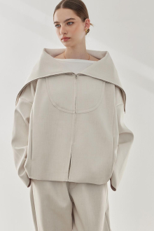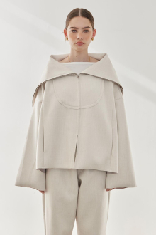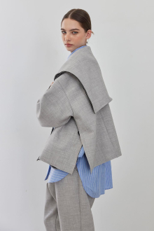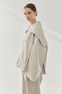 素材特有の厚みとハリ感が美しいシルエットを作り出す、セーラーカラージャケット。