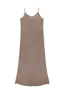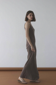 身体に優しく沿うナチュラルなシルエットと、裾にかけて広がる控えめなフレアが、女性らしさを引き立てます。