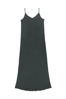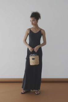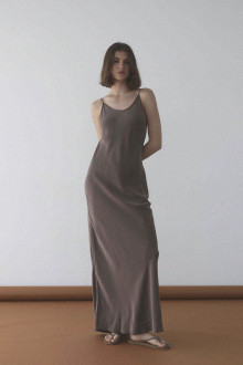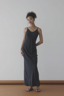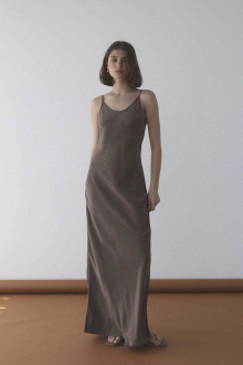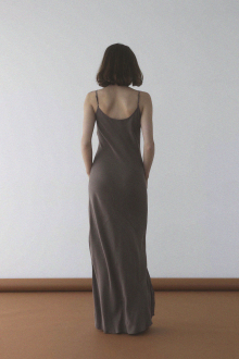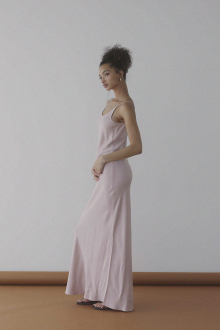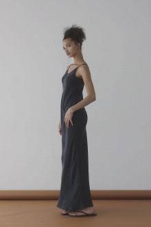 艶やかでしなやかなサテン素材が、着る人の動きに寄り添いながら上品な光を放つロングドレス。