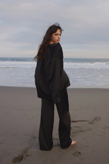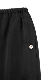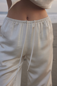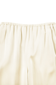 滑らかな光沢感ととろみ感が女性らしさを引き立てるパンツ。