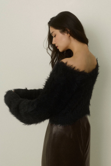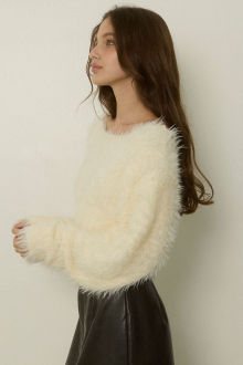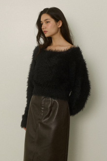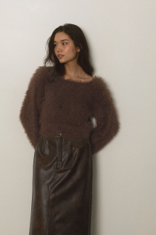 毛足の長いふわふわなニット生地が魅力のシャギーニットトップス。
