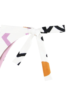 視線を上の方に集める存在感のあるリボンと、ヒップを高く見せてくれるカットが特徴です。