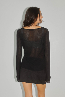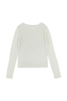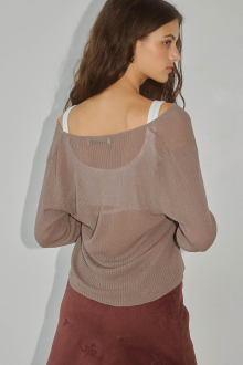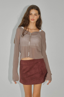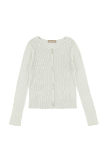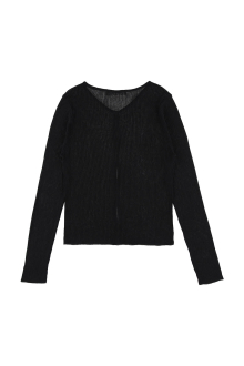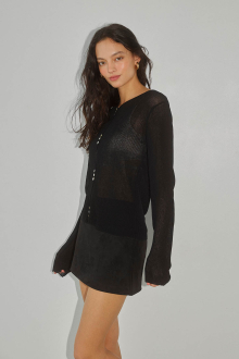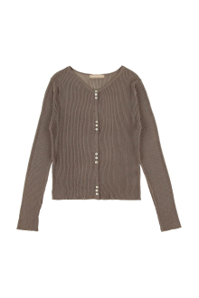 シャリ感のある薄手のシアーニット生地で仕立てられたカーディガン。