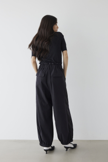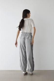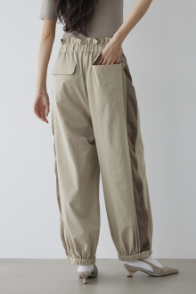 落ち感のあるしっとりとしたナイロン素材を使用した、パラシュートパンツ。