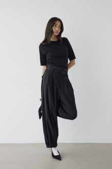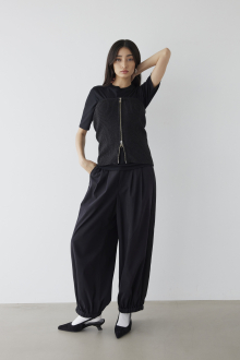 裾のドローストリングを絞れば、シルエットの変化を楽しむことができます。