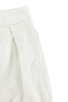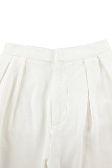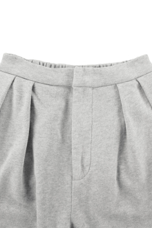 カジュアルになりがちなスウェットパンツにタックを入れることで、スラックスのような綺麗めな印象を与えます。