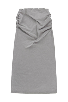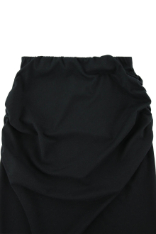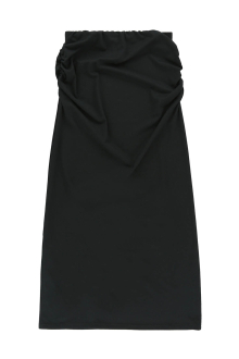 ヒップ周りにはギャザーを施し、ラインを拾いすぎず自然に体に沿うシルエットに。