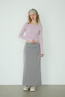サイドのファスナーでスリットの位置を自在に調整できる、ロングスカート。