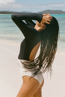 アクティブなシーンでも美しさをキープする、パッド入りのラッシュワンピースが登場。