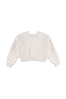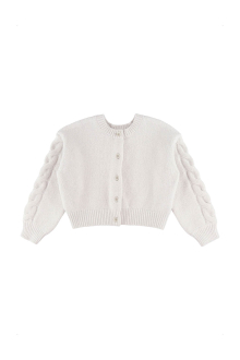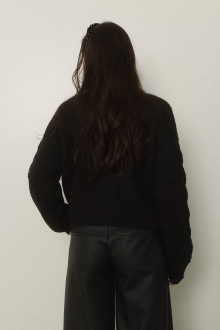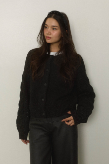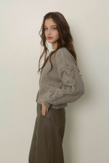 ふんわりとしたケーブル編みのスリーブが、冬の着こなしに可愛らしい表情を添えてくれます。