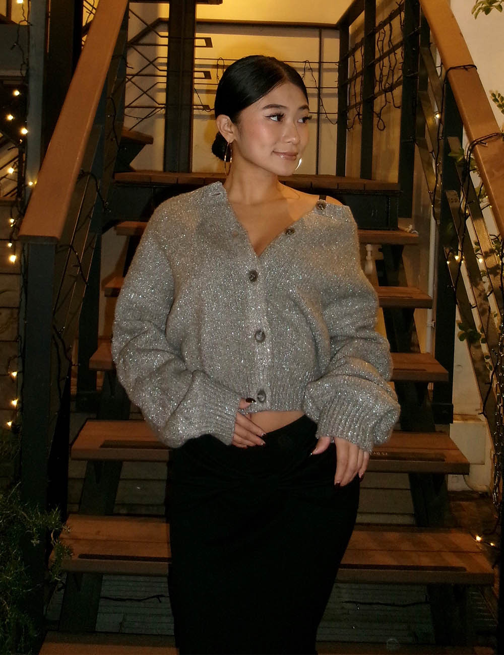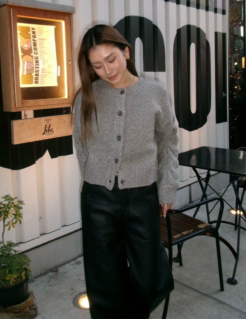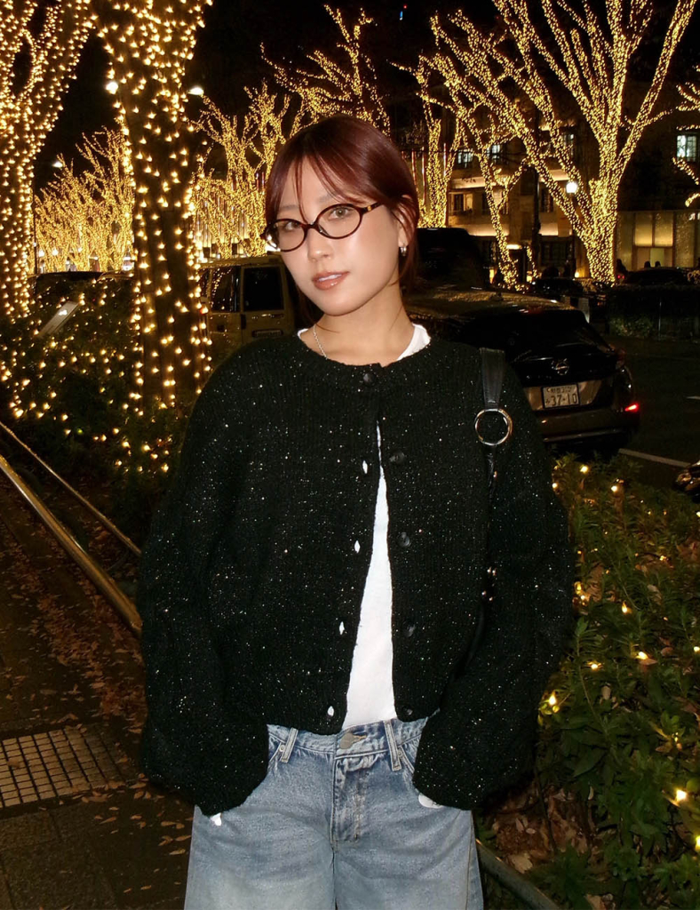 キラキラのラメをたっぷり散りばめた、心ときめくニットトップス。