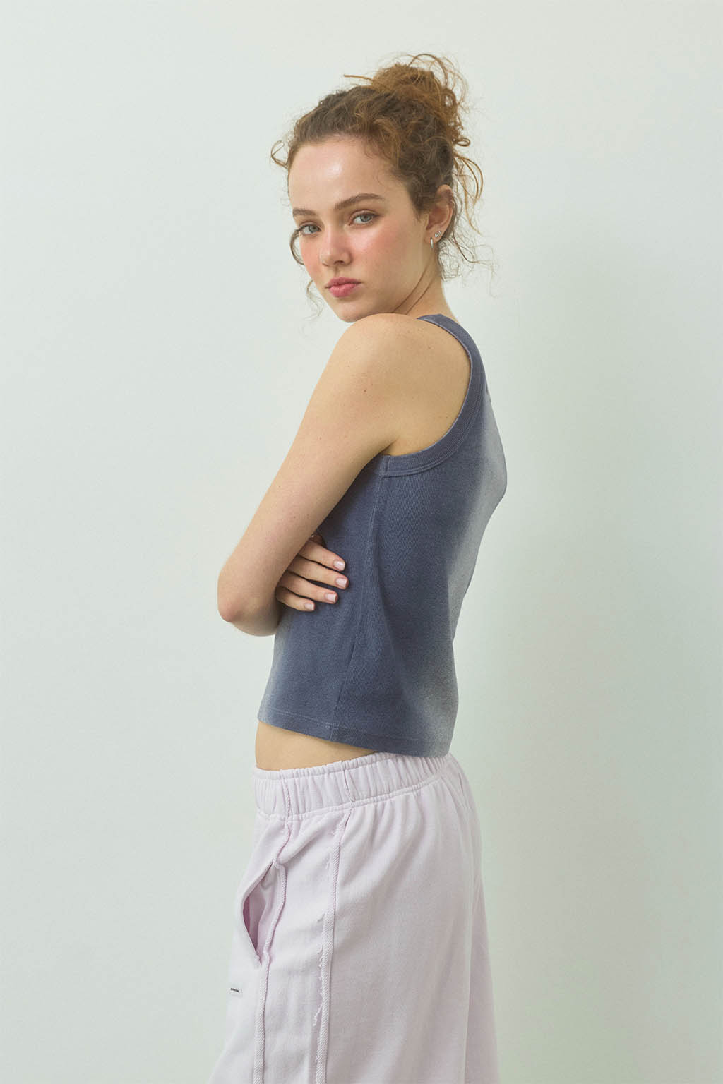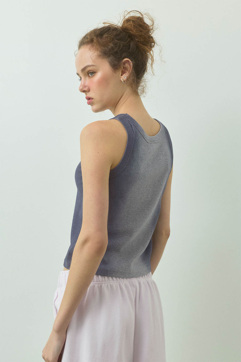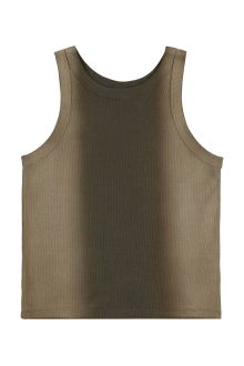 ニュアンスのあるスプレー加工が印象的な、リブタンクトップ。