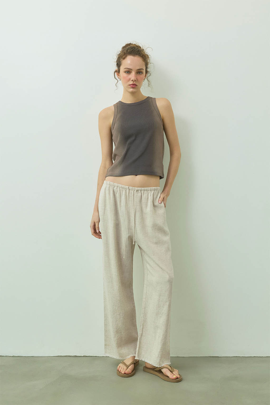 アームホールやネックラインはミニマルに仕上げ、ヘルシーで洗練された印象に見せてくれる1枚です。