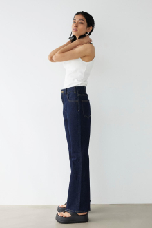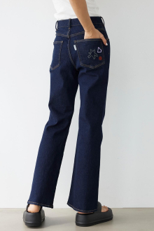 フレアシルエットが美しい脚のラインを演出するデニムパンツ。