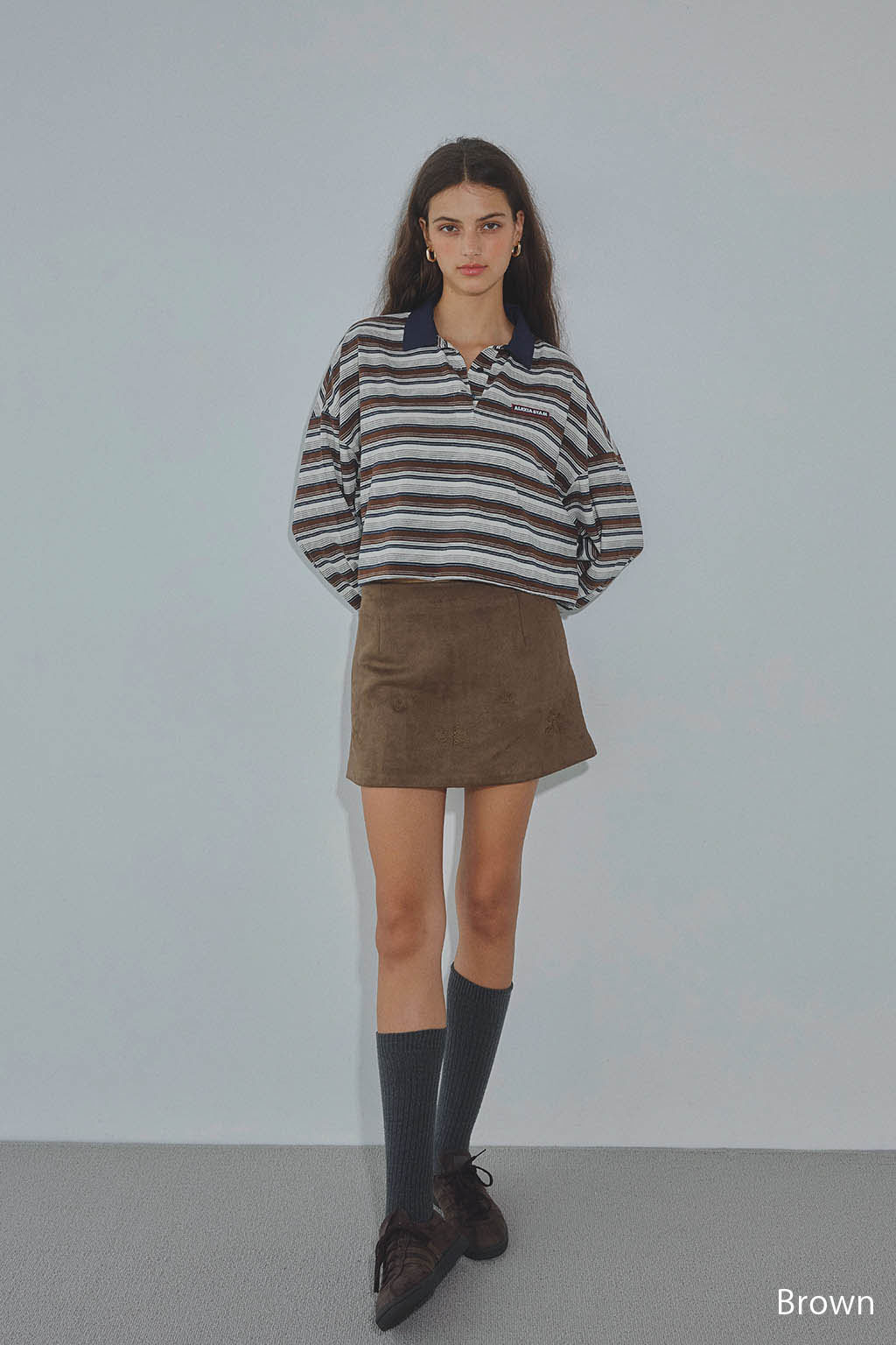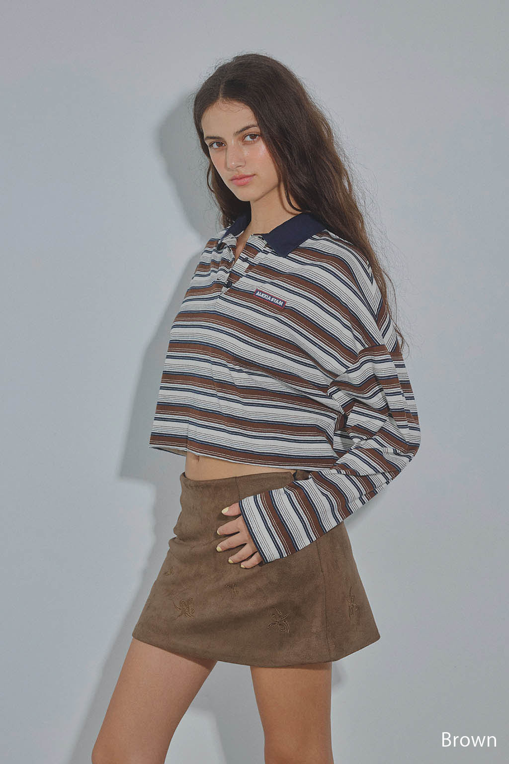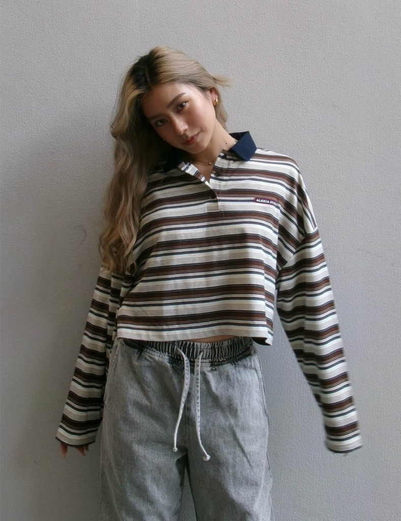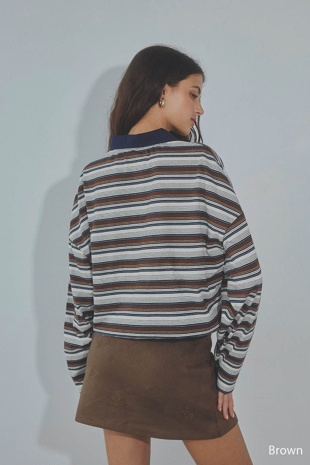 バイカラーの襟や胸のブランドロゴ刺しゅうがポイントです。