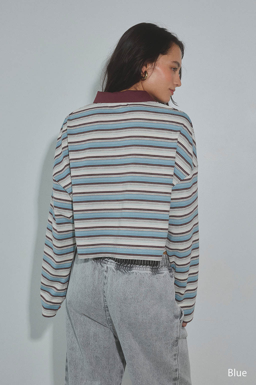 レトロスポーティな配色ボーダーがアクセントに映えるカットポロシャツ。