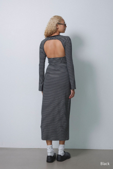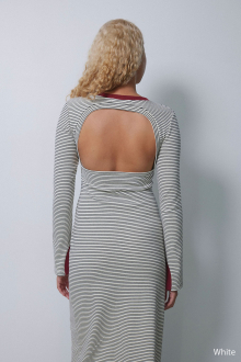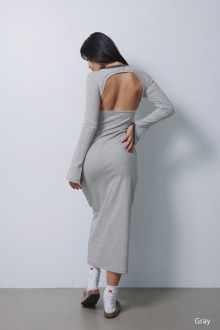背中開きのデザインでバックスタイルを綺麗に魅せ、袖の変形デザインが手先まで美しく魅せます。